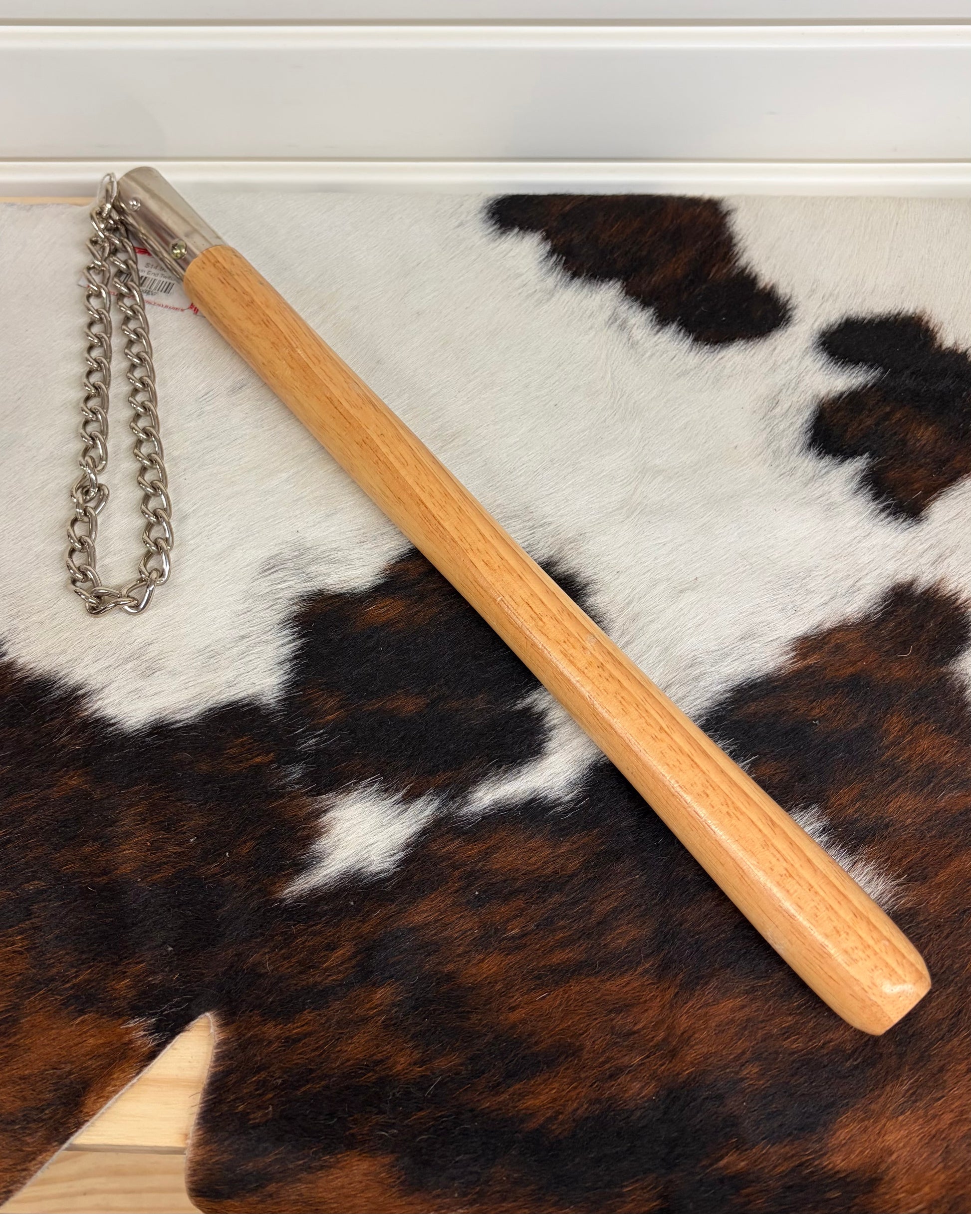 Wooden handle twitch with chain end slips over horse's lip and tightens with a twist.