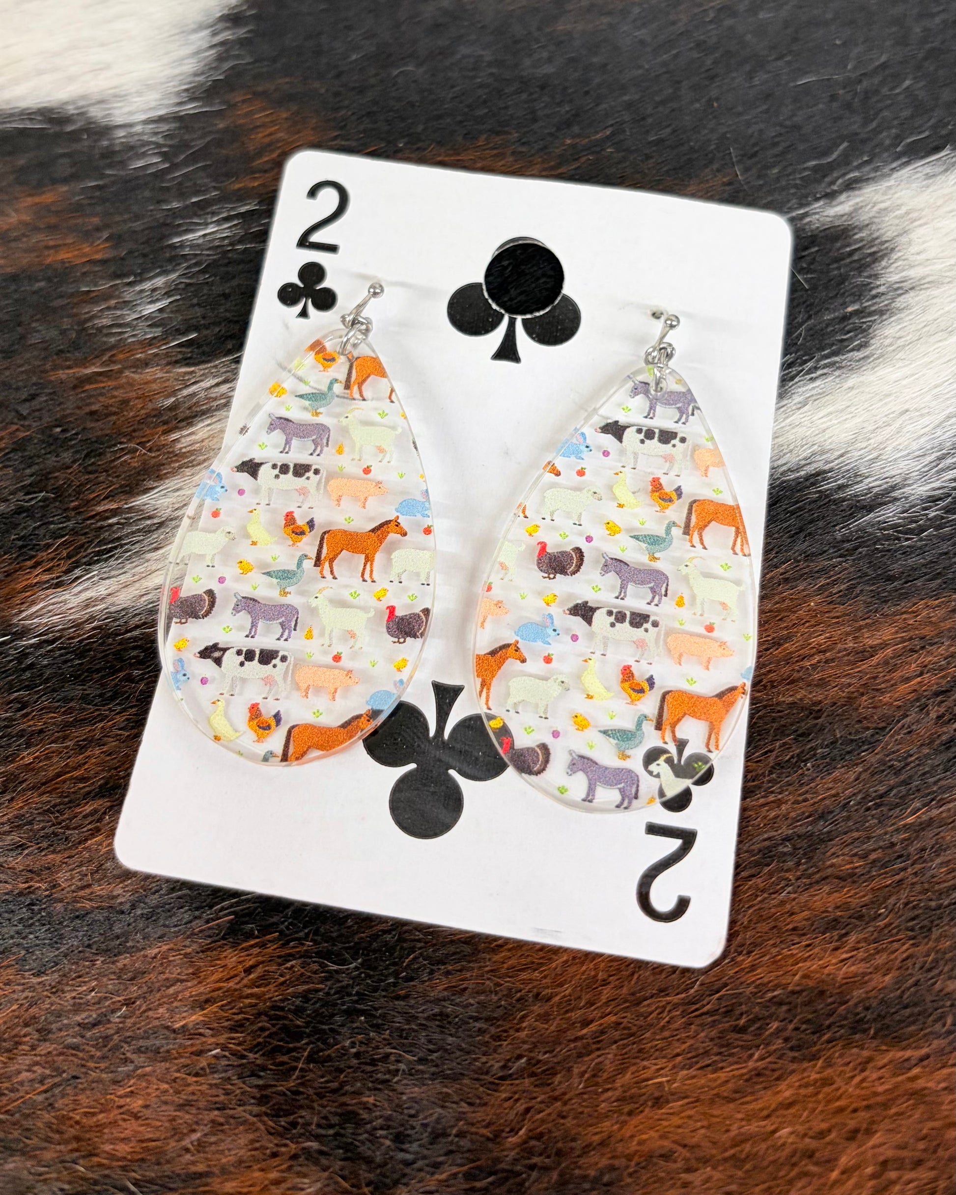 These lightweight farm animal earrings measure 2" excluding the hook.