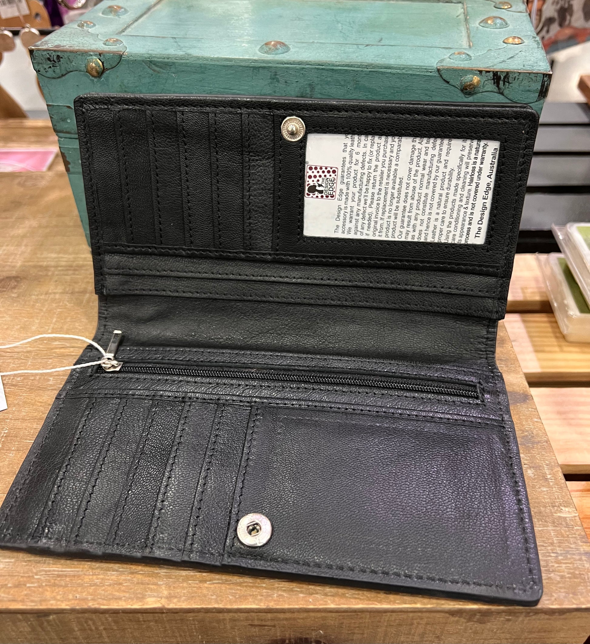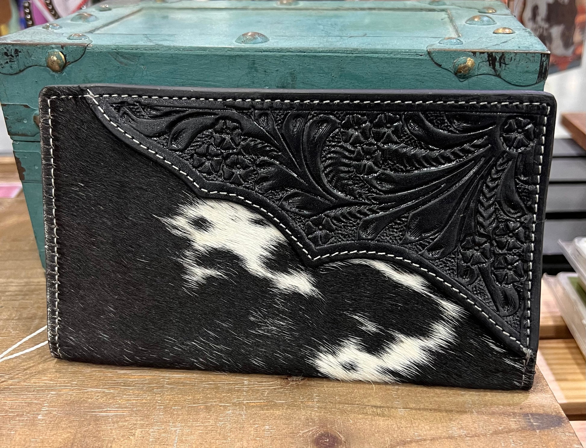 Our new favorite line of handbags and wallets we carry! Great quality leather and hide. Cowhide may vary on each piece.
