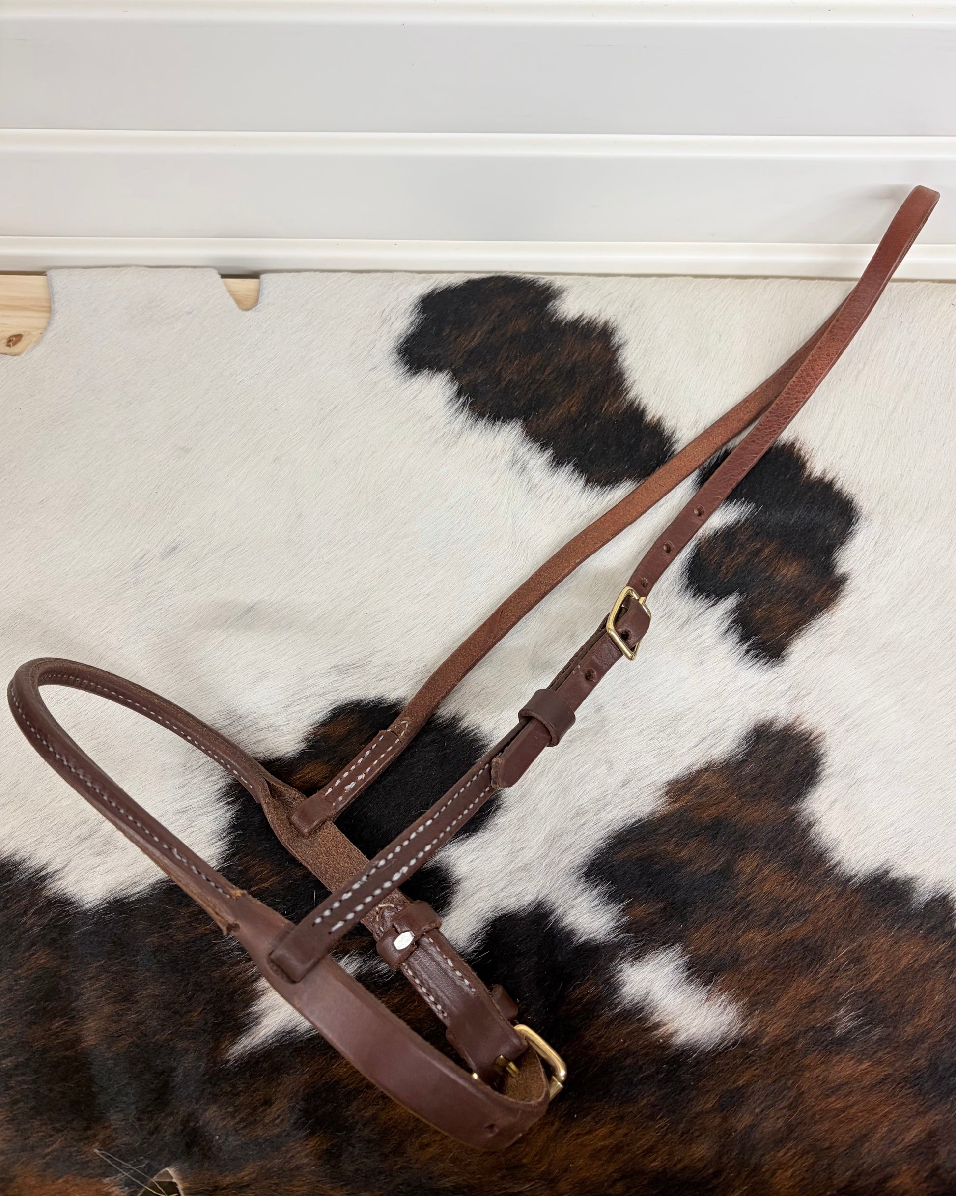 Oiled harness leather rolled nose caveson. Made in Indiana.
